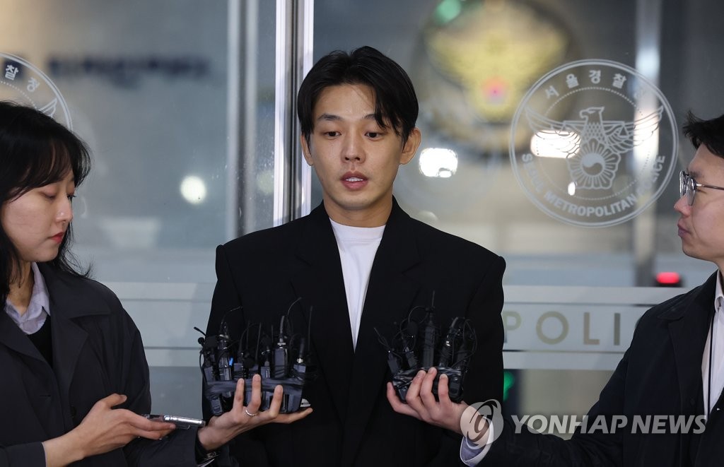 | ▲ '마약 혐의' 유아인 조사 종료 (서울=연합뉴스) 류영석 기자 = 대마·프로포폴·코카인·케타민 등 마약류 투약 혐의를 받는 배우 유아인(본명 엄홍식)이 27일 오후 경찰 조사를 마친 뒤 서울경찰청 마약범죄수사대를 나서며 발언하고 있다. 2023.3.27 ondol@yna.co.kr |