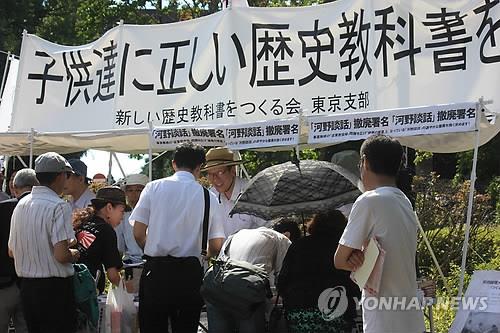 | ▲ 고노담화 철폐 서명을 받고 있는 새로운 역사 교과서를 만드는 모임(새역모) [연합뉴스 자료사진] |
