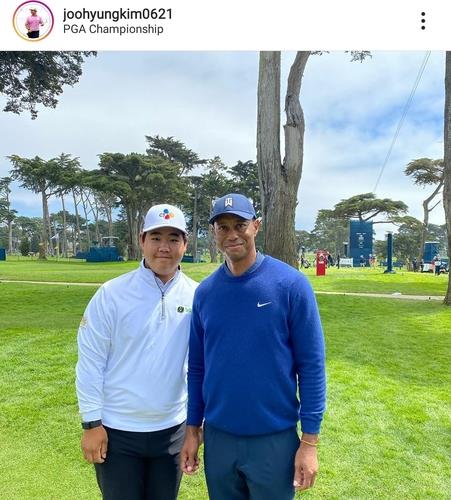 | ▲ 2020년 8월 PGA 챔피언십 당시 김주형(왼쪽)과 우즈 [김주형 소셜 미디어 사진. 재판매 및 DB 금지] |
