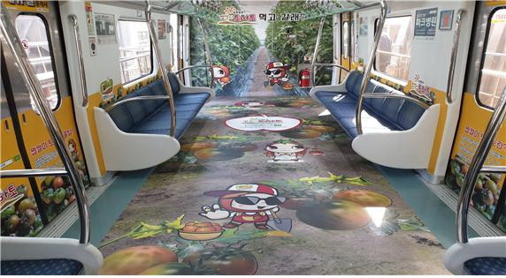 | ▲ 부산 대저 토마토 홍보 테마열차 내부 [부산교통공사 제공·재판매 및 DB 금지] |