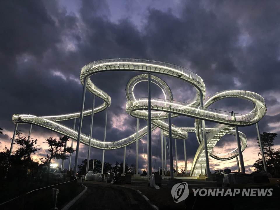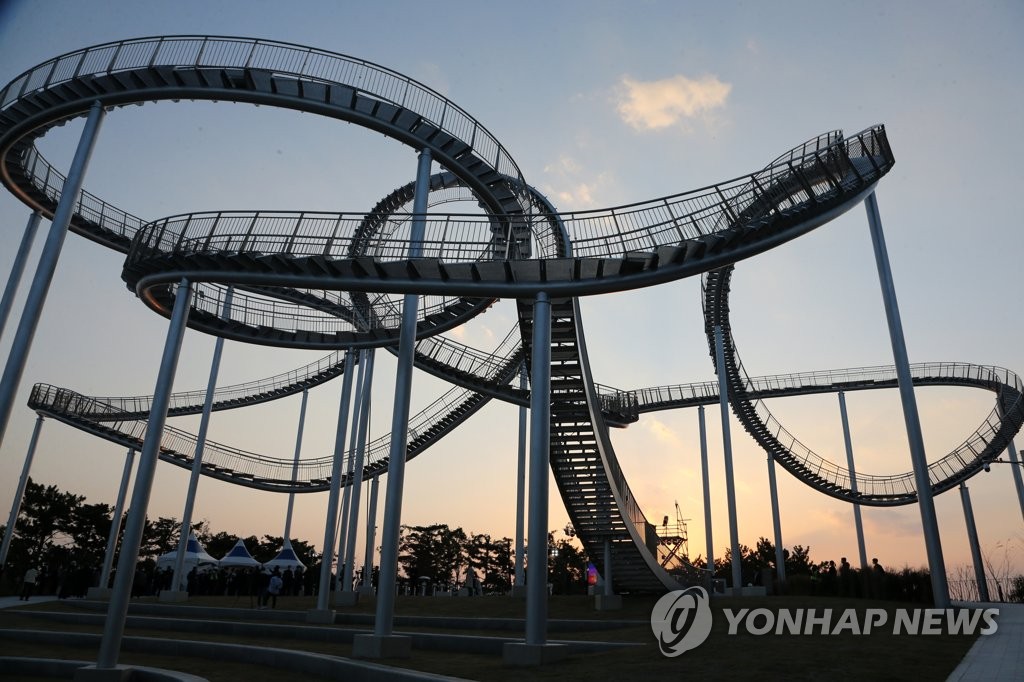 | ▲ 유려한 곡선 (포항=연합뉴스) 손대성 기자 = 지난해 11월 18일 경북 포항시 북구 환호공원에서 제막한 국내 최대 규모 체험형 조형물 '스페이스워크' 전경. 2021.11.18 sds123@yna.co.kr |