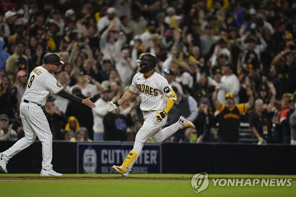 | ▲ 홈런 치고 3루 돌며 팬들의 열광적인 응원을 받는 김하성 [AP=연합뉴스] |