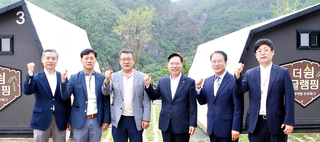 (삼척=연합뉴스) 배연호 기자 = 강원 삼척시 도계읍 하이원추추파크가 30일 더쉼 글램핑의 개장 기념행사를 했다.