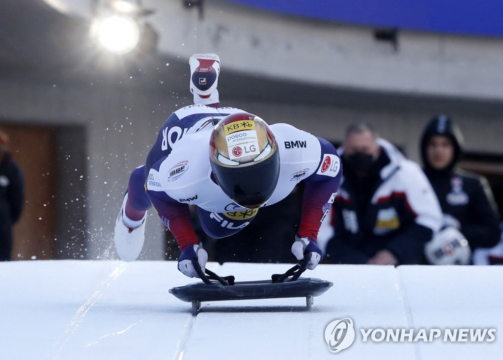 | ▲ This Oct. 19, 2021, file photo provided by the Korea Bobsleigh & Skeleton Federation shows South Korean skeleton slider Yun Sung-bin. (PHOTO NOT FOR SALE) (Yonhap) |