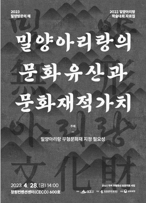 밀양시는 밀양아리랑을 무형문화재로 지정받고자 이번 학술대회를 했다.