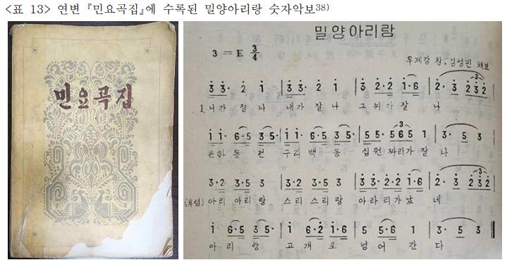 | ▲ 중국 연변 '민요곡집'에 수록된 밀양아리랑 숫자악보 [밀양아리랑 학술대회집 캡처. 재판매 및 DB 금지] |