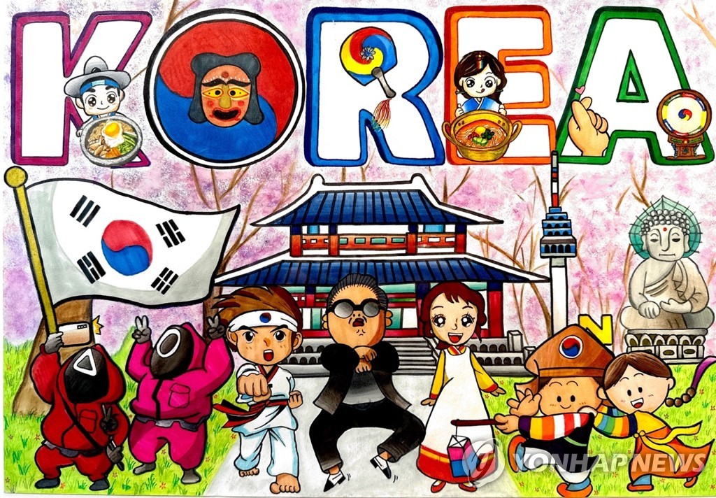 170여개 출품작에 공통으로 많이 보인 상징들은 태극기·태권도·김치·비빔밥·남산서울타워·광화문·한복·북촌거리·K팝 등이었습니다.