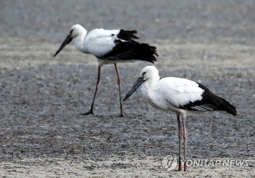 (전주=연합뉴스) 임채두 기자 = 환경부 멸종위기종 1급이자 천연기념물 제199호인 황새가 전북 전주∼완주∼익산 경계에 흐르는 만경강 중류에서 관찰됐다.