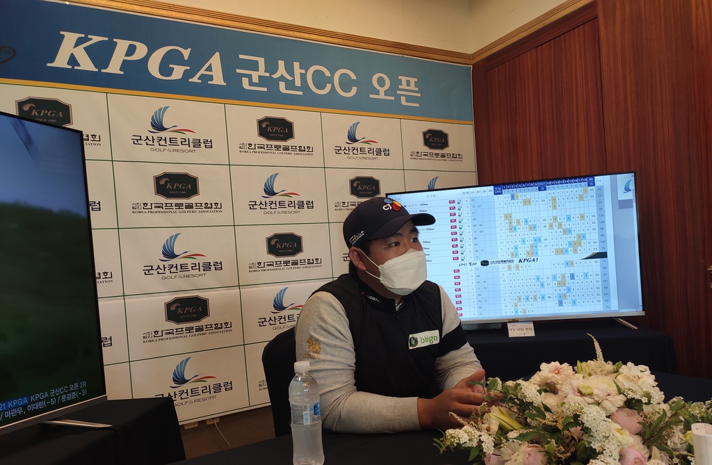 | ▲ 2라운드 인터뷰하는 김주형. [촬영= 김동찬] |