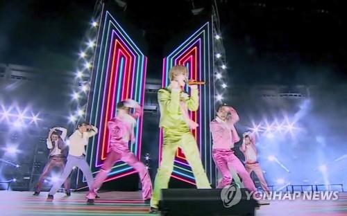 | ▲ 아메리칸 뮤직 어워즈 무대 펼치는 방탄소년단 (로스앤젤레스 AP=연합뉴스) 22일(현지시간) 열린 '2020 아메리칸 뮤직 어워즈(AMAs)'에서 방탄소년단(BTS)이 잠실 올림픽주경기장에서 촬영한 무대를 선보이고 있다. [ABC 방송 캡처] knhknh@yna.co.kr |