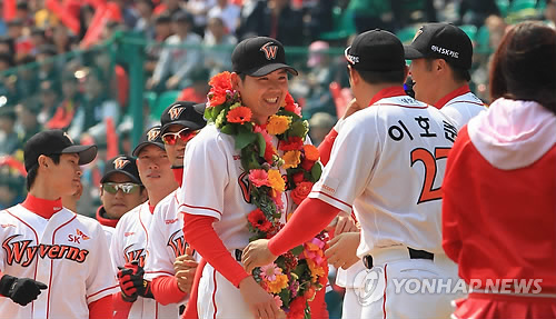 | ▲ 2012년 4월 8일 김원형의 은퇴식 [연합뉴스 자료사진] |