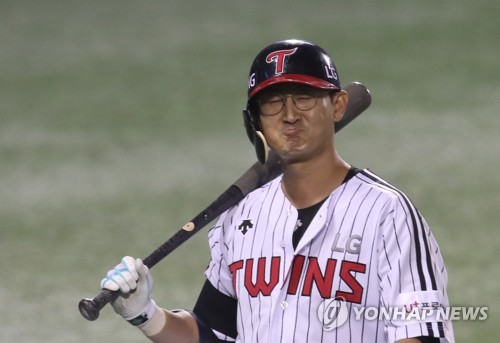 8회말 무사 주자 1루 상황에서 LG 대타 박용택이 3루 쪽 파울 플라이로 아웃된 뒤 더그아웃으로 돌아가고 있다. 2020.11.5 hihong@yna.co.kr |