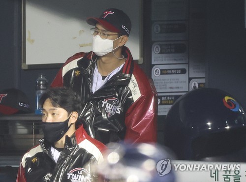 | ▲ 박용택, 유광 점퍼 입고 그라운드 응시 (서울=연합뉴스) 홍해인 기자 = 5일 오후 서울 잠실야구장에서 열린 2020 프로야구 포스트시즌 준플레이오프(준PO) 2차전 두산 베어스와 LG 트윈스의 경기.