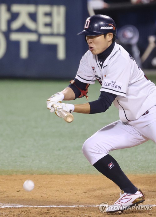 | ▲ 정수빈의 기습번트 [연합뉴스 자료사진] |