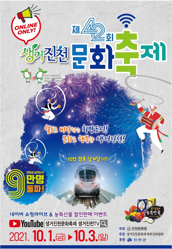 사흘간 열리는 이번 축제는 신종 코로나바이러스 감염증(코로나19) 확산에 따라 축제 전용 유튜브 '생거진천TV' 채널을 통해 온라인으로 열린다.