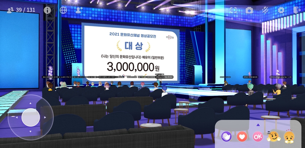 ▲ 한국문화재재단은 올해 문화유산채널 영상 공모 행사 시상식을 지난달 29일 메타버스(3차원 가상세계) 플랫폼 SKT 이프랜드에서 진행했다.