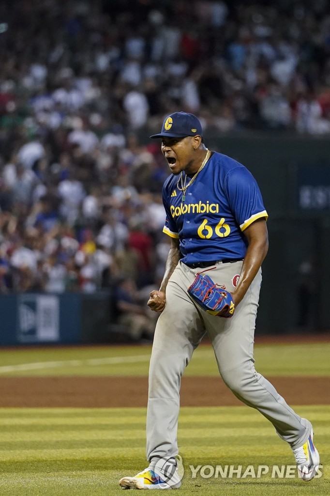 | ▲ 시속 161㎞의 강속구로 승리 지킨 콜롬비아 투수 수니가 [AP=연합뉴스] |