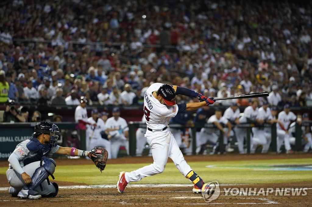 이어 MJ 멜렌데스(캔자스시티 로열스)의 2타점 중전 적시타, 엠마누엘 리베라(애리조나 다이아몬드백스)의 땅볼, 하비에르 바에스(디트로이트 타이거스)의 우전 적시타 등으로 4점을 더 보태 6-1로 달아나며 승기를 잡았다.