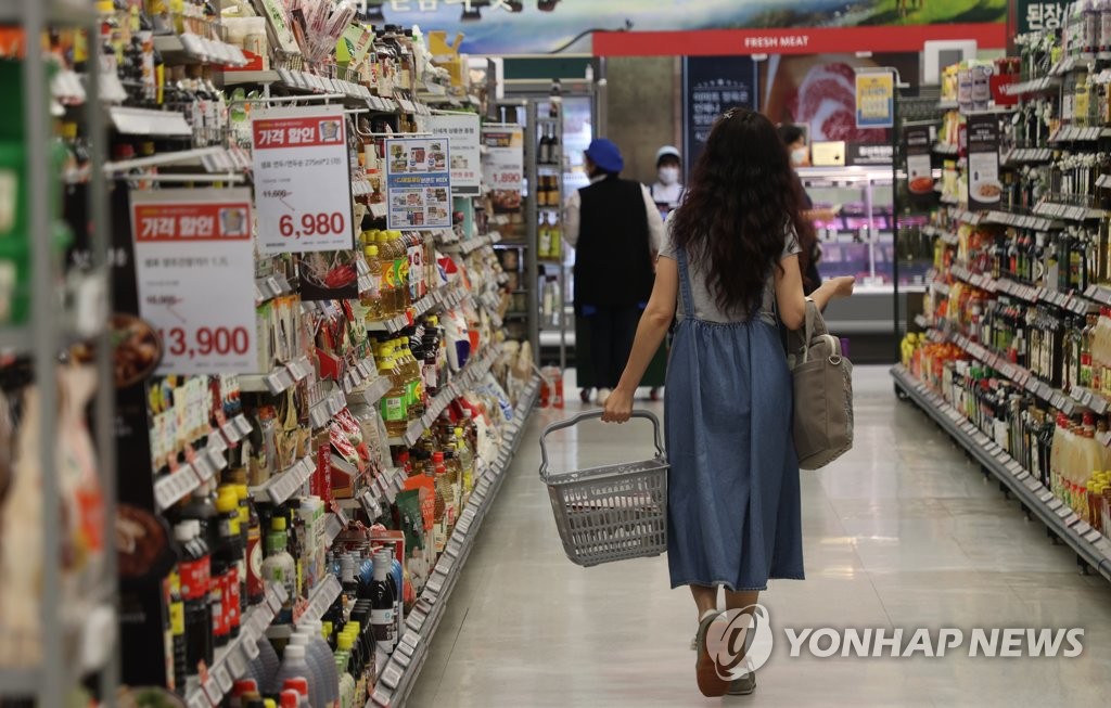 | ▲ This file photo, taken June 27, 2022, shows people shopping for groceries at a discount store chain in Seoul amid high inflation. (Yonhap) |