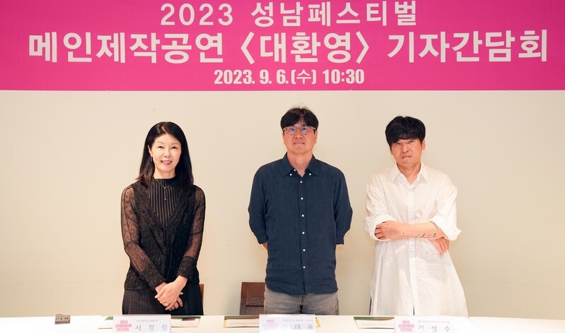 | ▲ 성남문화재단 2023 성남페스티벌 메인제작공연 기자간담회 왼쪽부터 김성수 공동연출, 서정림 성남문화재단 대표이사, 김태용 예술감독. [성남문화재단 제공. 재판매 및 DB 금지] |