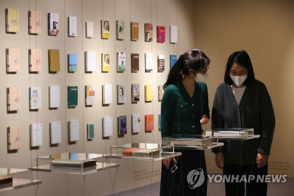 | ▲ 고 이어령 1주기 추모 '이어령의 서' (서울=연합뉴스) 강민지 기자 = 24일 오전 서울 서초구 국립중앙도서관에서 개막한 故 이어령 1주기 추모 특별전시 '이어령의 서'에서 관람객들이 저서들을 살펴보고 있다.