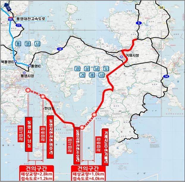 또 2022년 대통령 선거 때 한산대첩교 구간을 포함하는 거제∼한산도∼통영 해상 연결교량 건설사업이 윤석열 대통령의 경남 지역공약사업에 반영됐다.