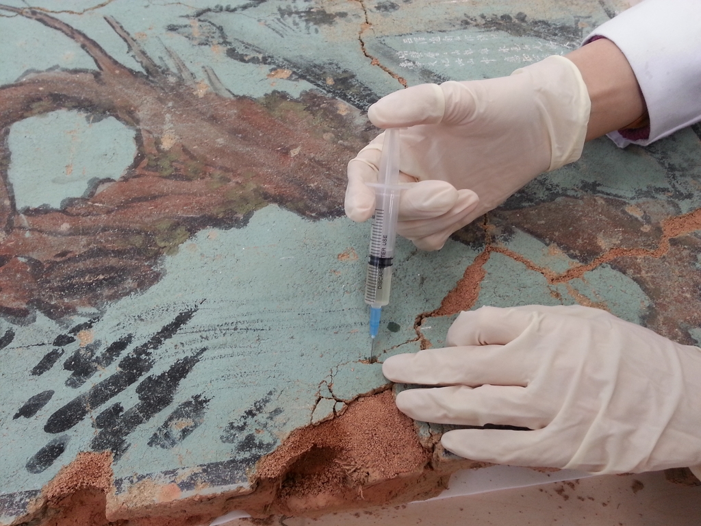 | ▲ 벽화의 균열 부분을 접착하는 작업 [국립문화재연구원 제공. 재판매 및 DB 금지] |