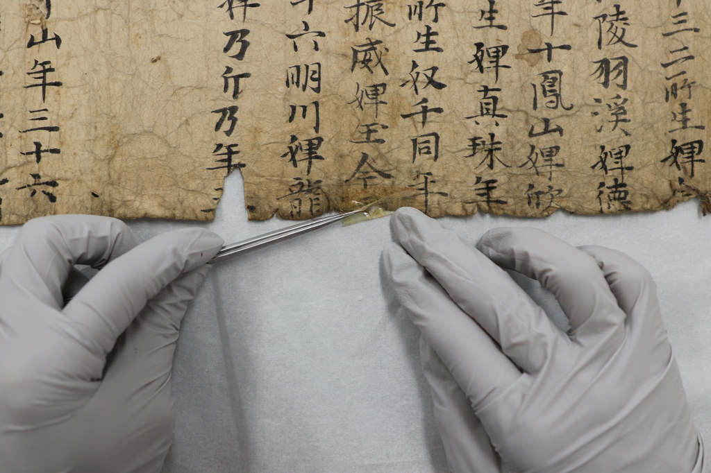 | ▲ 고문서에 붙은 테이프를 제거하는 작업 [국립문화재연구원 제공. 재판매 및 DB 금지] |