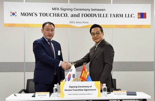 SEOUL, April 4 (Yonhap) -- South Korean chicken burger chain Mom's Touch&Co. said Tuesday it inked a master franchise agreement with Mongolia's Foodville Farm LLC, in its first steps to enter the central Asian country.