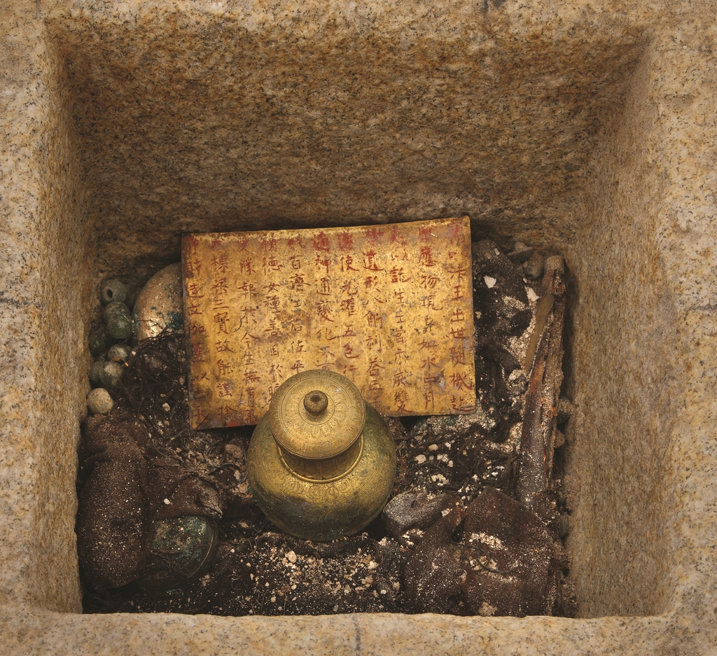 | ▲ 미륵사지 서탑 출토 사리장엄구 발견 당시 모습 [국립익산박물관 제공. 재판매 및 DB 금지] |