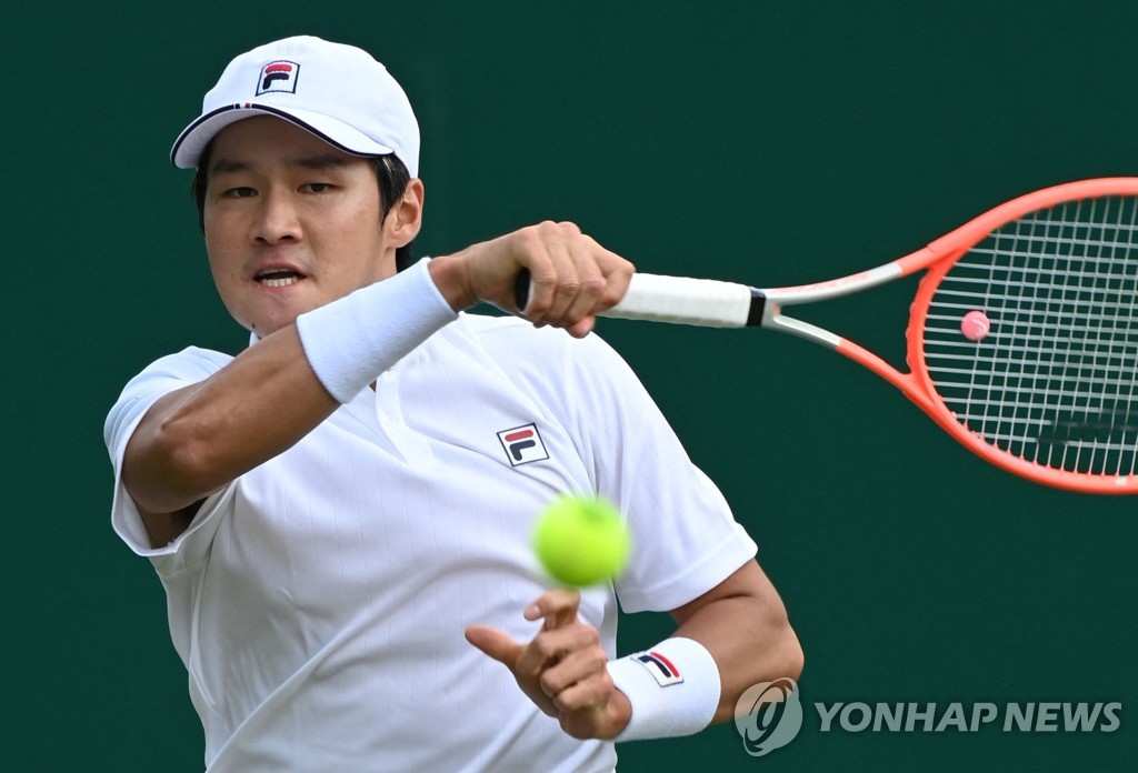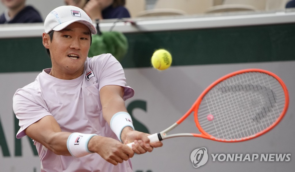 | ▲ In this Associated Press file photo from June 5, 2021, Kwon Soon-soo of South Korea hits a return to Matteo Berrettini of Italy during their third round men's singles match at the French Open at Roland-Garros in Paris. (Yonhap) |