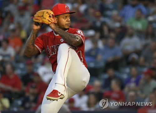 | ▲ In this Getty Images file photo from July 17, 2019, Felix Pena of the Los Angeles Angels pitches against the Houston Astros during the top of the first inning of a Major League Baseball regular season game at Angel Stadium in Anaheim, California. (Yonhap) |