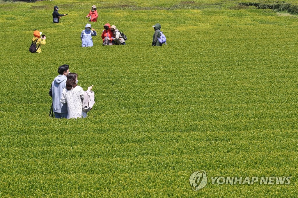 | ▲ 제주 녹차밭의 봄 (서귀포=연합뉴스) 지난 18일 오후 제주 서귀포시 안덕면 오설록 차밭에서 관광객들이 봄을 만끽하고 있다. [연합뉴스 자료사진] |