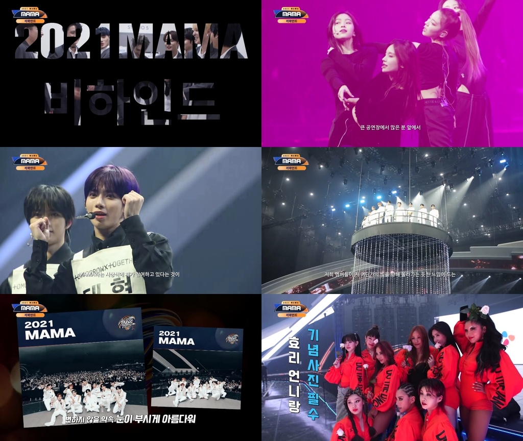 ▲ '2021 MAMA' 비하인드 내일 방송 = 엠넷은 지난 11일 개최된 K팝 음악 시상식 '2021 엠넷 아시안 뮤직 어워즈'(Mnet ASIAN MUSIC AWARDS·이하 'MAMA')의 뒷이야기를 담은 영상을 오는 29일 공개한다.