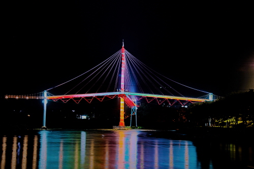 이번 공사를 통해 구름다리 주탑과 로프의 투광등, 보행로의 스텝등, 난간의 라인바 등 총 400여 개의 LED 조명 설치로 한 단계 진화된 경관 연출이 가능해졌다.