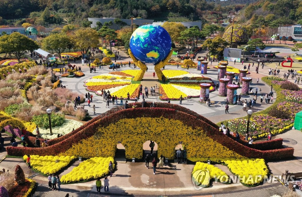 ▲ '2021 대한민국 국향대전' 전남 함평군 (함평=연합뉴스) 조남수 기자 = 단계적 일상회복(위드 코로나) 시행 후 맞이한 첫 휴일인 7일 전남 함평군 엑스포공원에서 열린 '2021 대한민국 국향대전'에 많은 시민이 입장해 가을 국화축제를 즐기고 있다. 2021.11.7 iso64@yna.co.kr