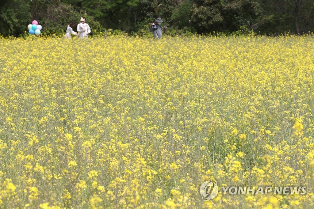 | ▲ 제주 항몽유적지의 봄 (제주=연합뉴스) 박지호 기자 = 19일 오전 제주시 애월읍 항몽유적지를 찾은 관광객이 유채밭에서 봄 정취를 만끽하고 있다. 2022.4.19 jihopark@yna.co.kr |