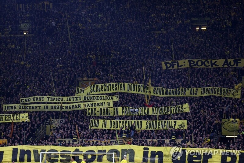지난해 12월 분데스리가를 운영하는 독일축구리그(DFL)가 클럽 투표를 통해 외부 투자 자본에 중계권 지분 일부를 매각하는 계획을 결정하자 팬들이 여러 방식으로 반대 의견을 표출하고 있는데, 이날 도르트문트의 상황도 그 일환이었다.