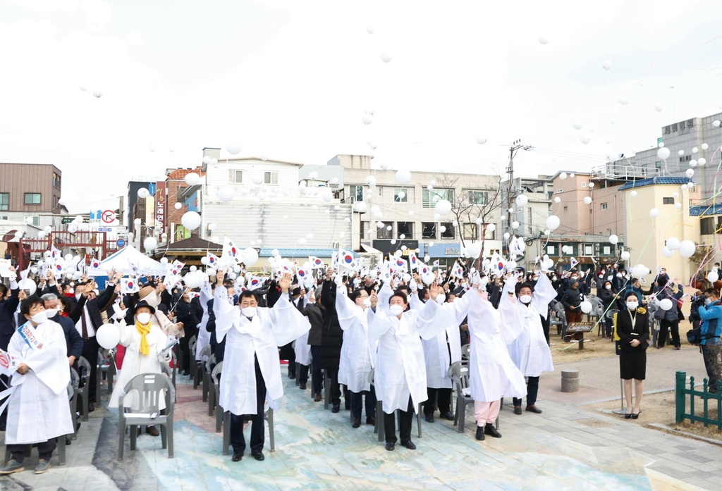 경주시는 1일 봉황대에서 시민 290여명이 참석한 가운데 '경주 3·1독립만세운동 발상지' 표지석 제막식을 했다.