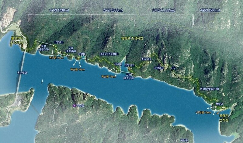 이는 가은산 기슭 옥순대교와 성골선착장을 연결하는 3.2㎞ 구간에 탐방로를 조성하기 위한 것으로, 오는 2025년 하반기 착공해 2027년 하반기 완공할 예정이다.