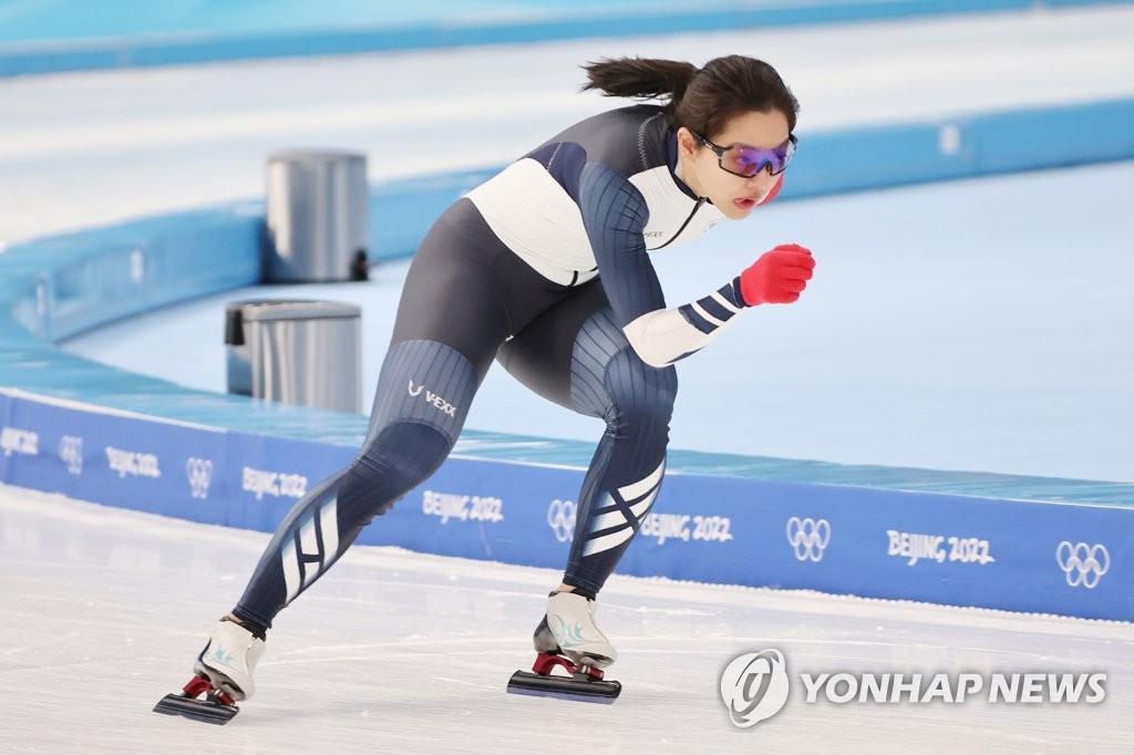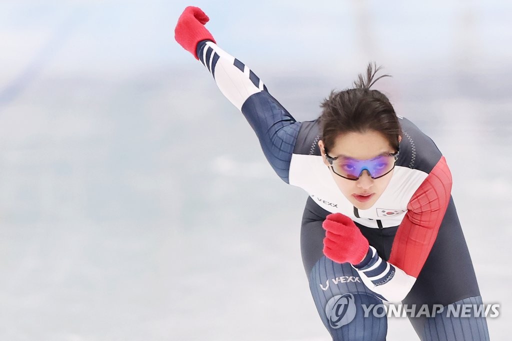 | ▲ South Korean speed skater Kim Bo-reum trains at the National Speed Skating Oval in Beijing on Feb. 6, 2022, in preparation for the Beijing Winter Olympics. (Yonhap) |