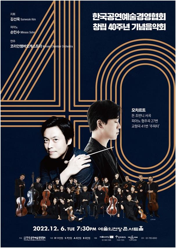 ▲ 한국공연예술경영협회 창립 40주년 기념 공연 = 한국공연예술경영협회가 12월 6일 서울 서초구 예술의전당 콘서트홀에서 창립 40주년 기념 음악회를 연다.