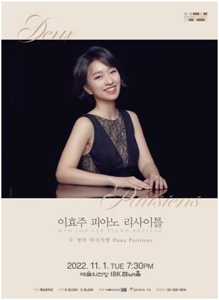 ▲ 피아니스트 이효주 리사이틀 = 피아니스트 이효주가 11월 1일 서울 서초구 예술의전당 IBK챔버홀에서 리사이틀 '두 명의 파리지앵'을 연다.