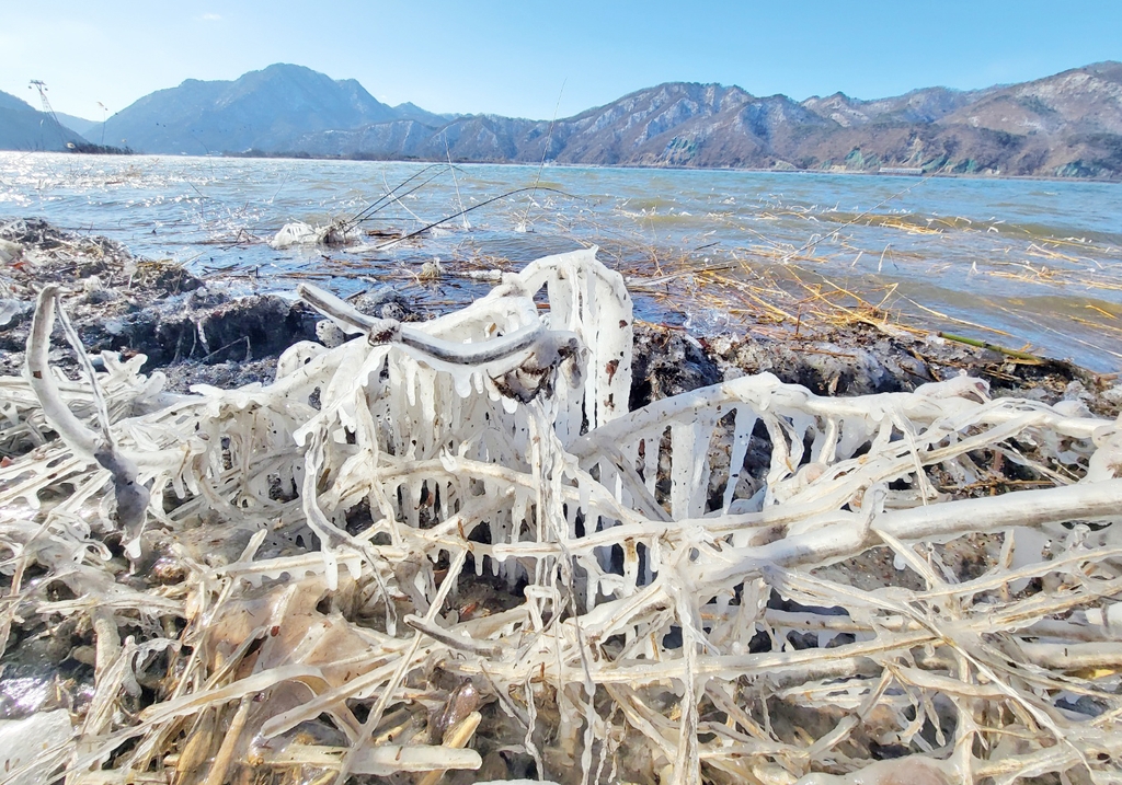 | ▲ 24일 오전 강원 춘천시 의암호변 얼어붙은 나무 [촬영 이상학] |