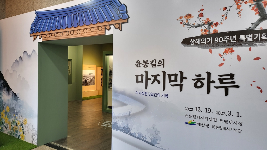 (예산=연합뉴스) 김소연 기자 = 충남 예산군 윤봉길의사기념관은 상해 의거 90주년 특별기획전 '윤봉길의 마지막 하루'를 19일 개막했다고 밝혔다.