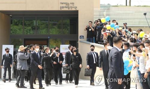 | ▲ 깨어있는 시민 문화체험전시관 둘러본 문재인 전 대통령 노무현 전 대통령 서거 13주기 추모제가 엄수된 지난 5월 23일 오전 문재인 전 대통령이 경남 김해시 진영읍 봉하마을 '깨어있는 시민 문화체험전시관'을 방문 후 이동하고 있다. [연합뉴스 자료사진] |