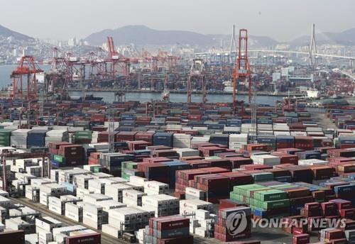 | ▲ This photo taken Feb. 1, 2023, shows stacks of containers at a port in South Korea's southeastern city of Busan. (Yonhap) |
