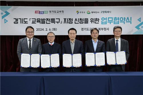 ▲ EBS는 고양시와 경기도교육청, 중부대학교, 고양산업진흥원과 '교육부 교육발전특구 시범지역 공모 신청을 위한 업무협약'을 체결했다고 5일 밝혔다. EBS는 교육 발전 전략과 지역 인재 양성 시스템을 함께 구축하며 공교육 분야를 적극 지원할 예정이다. (서울=연합뉴스)