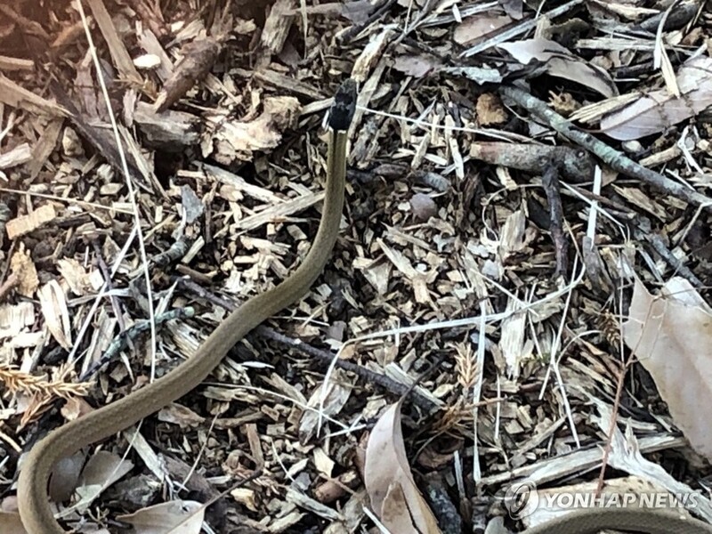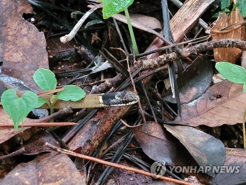 | ▲ 한라산에서 발견된 멸종위기 야생생물 1급 비바리뱀 (제주=연합뉴스) 한라산 돈내코탐방로 인근에서 발견된 비바리뱀. 제주도 세계유산본부가 지난해 한라산 현지 조사 과정에서 발견해 사진 찍었다. 비바리뱀은 멸종위기 야생생물 1급으로 제주에서만 서식하는 것으로 알려져 있고 개체 수 또한 매우 적다. 2023.4.5 [제주도 세계유산본부 제공. 재판매 및 DB 금지] koss@yna.co.kr |