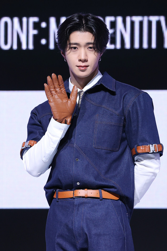 Wyatt, a member of South Korean boy group ONF, poses for a photo during a showcase in Seoul on Feb. 18, 2025, to promote the release of the group's second album "ONF:My Identity." (Yonhap)